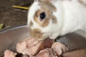 兔子也吃肉,对着肉哐哐炫