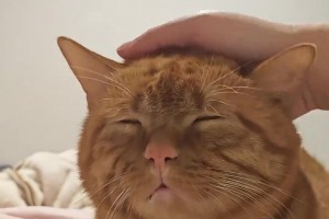 主人抚摸小猫,它满脸享受想办卡